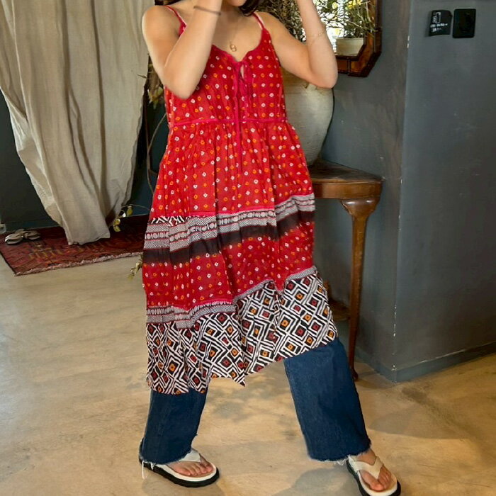 【CHEVA】キャミソール型ロングワンピース(裏地無)!ヒッピー/ボヘミアン/フォークロア/tompa
