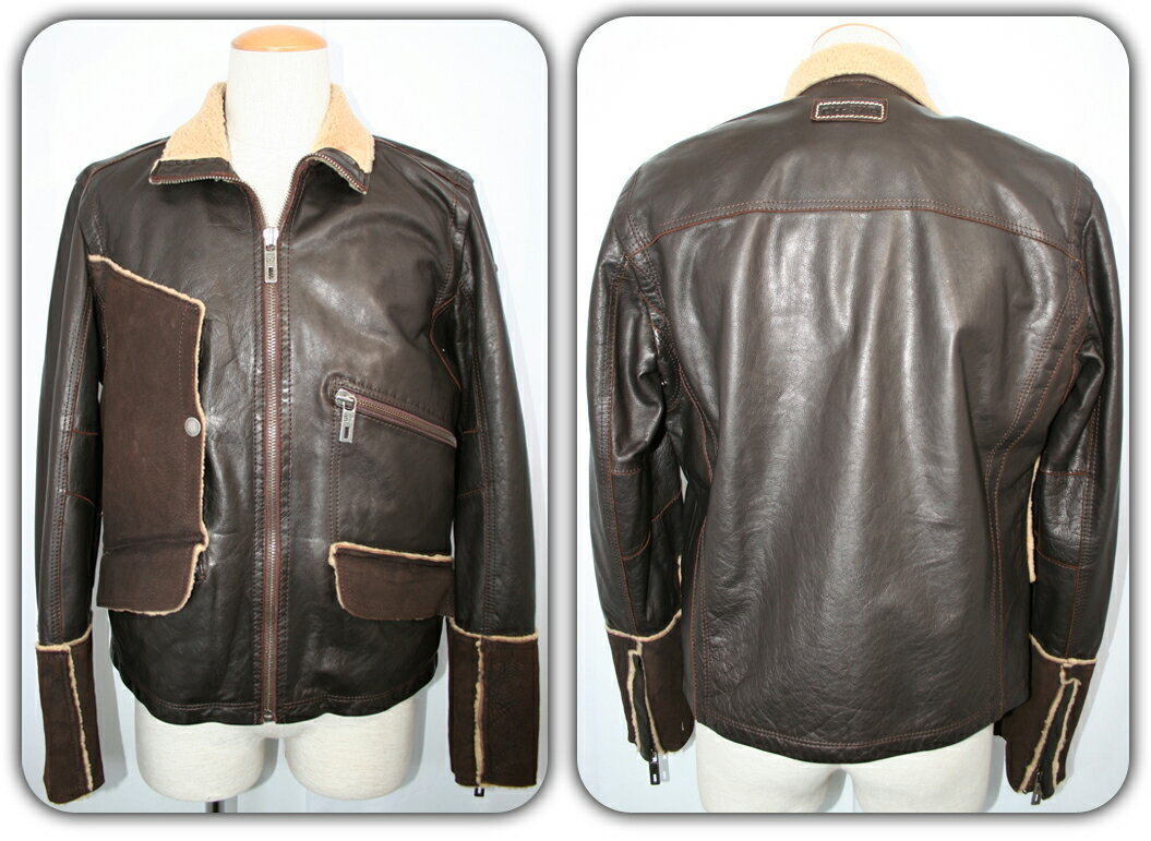 素材:牛革 部分使い:ムートン 裏地:コットン100% サイズ 身幅 肩幅 着丈 袖丈 M 53 46 63 65 単位(cm) ※採寸は平置きで測っています。 ※袖丈は肩から袖口までの長さを測っています。 ※シワや素材により若干のサイズ違いはご了承くださいませ。