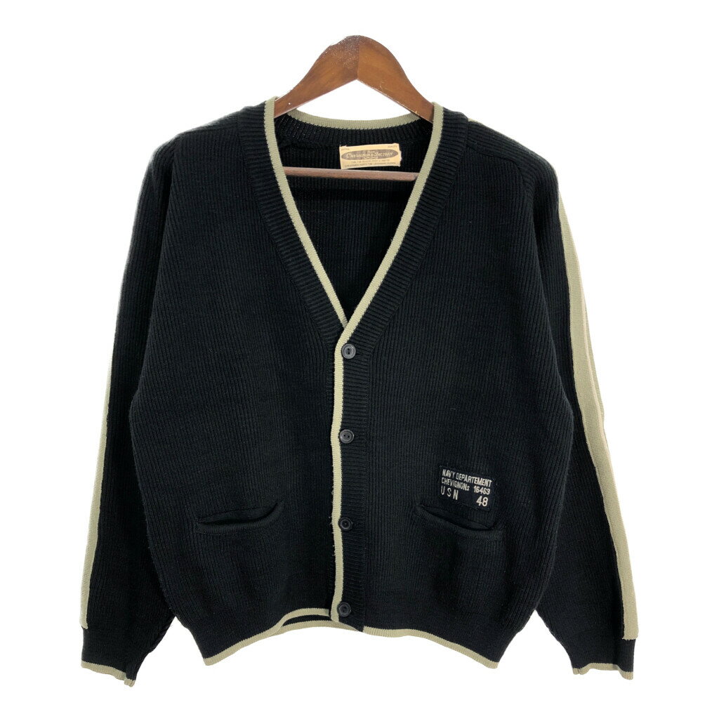 CHEVIGNON ウール ニット カーディガン ミリタリー ブラック (メンズ M) 中古 古着 S6199