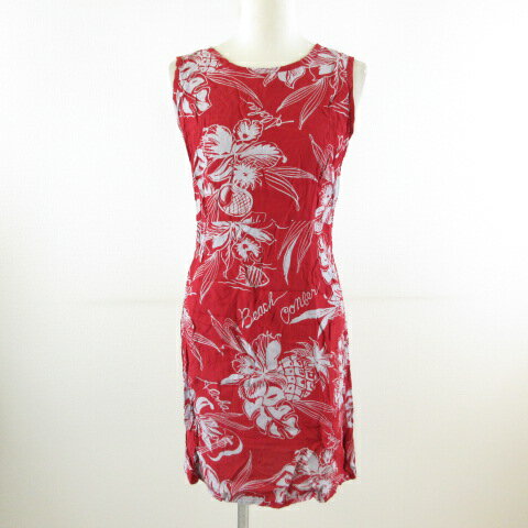 【中古】シェビニオンガール CHEVIGNON GIRL ワンピース ミニ ノースリーブ アロハ 総柄 赤 M *T51 レディース 【ベクトル 古着】 240711
