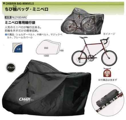 [返品不可]送料サイズ小納期△ 送料規定・納期はこちらでご確認下さい。ご注文処理の状況によりキャンセルや、ご注文内容修正へご対応出来ない場合がございます。ミニベロ専用輪行袋。人気のミニベロが輪行できる。前輪を外すだけの簡単収納。●付属品ショルダーベルト中締めベルトマジックベルトフレームカバー小重量:430g *本体のみの重量です。