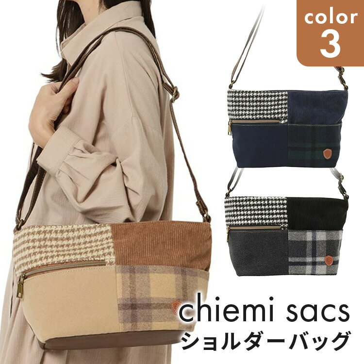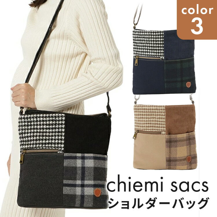 2024冬 ショルダーバッグ [chiemi sacs チエミサックス] ツイード素材 パッチワーク ショルダー 多ポケット レディース 6246