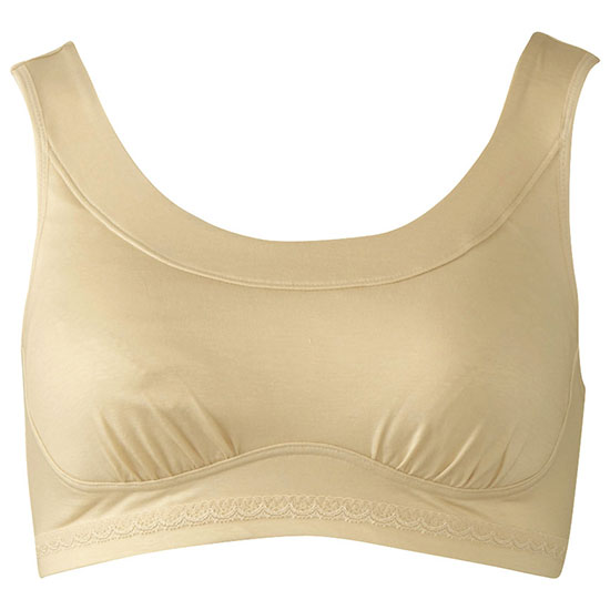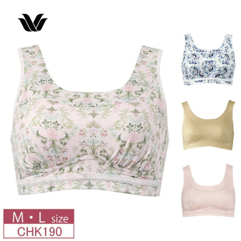 ・加齢による体型変化に対応した独自のパターン設計(アンダー部分全体にストレッチ性があるので圧迫感が少ない)・ストラップはラウンドタイプでズレ落ちにくく、幅広なので肩へくいこみにくい・見た目も涼しげで、速乾性のある素材をカップ肌側に使用・土台脇からバスト脇をソフトにサポートし、サイドからささえる構造で、圧迫感が少なくすっきりしたバストラインを追求・アンダー部分は、折り返し始末で圧迫感が少ない・見えても安心な、アウターライクなネックライン・本体はアールヌーボー調のプリント(ME・VIカラー)と、無地(BEカラー)の、やわらかいテンセルベア天竺素材を使用・パッド受けなし詳細事項:洗濯機可(ネット使用)素材:指定外繊維(テンセル)、ポリウレタン、その他