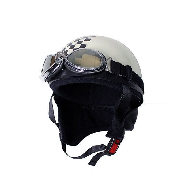 【メーカー直送】モトボワットBB ビンテージヘルメット パールホワイト/チェッカー BB-105 PWH/CHK