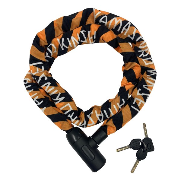 山城謹製 チェーンロックサイズ:1800mmカラー:イエロー直径Φ10mmの丸形チェーンを採用し、高い防犯効果を発揮します。チェーンは保護カバー付で車両へのダメージを軽減します。柔軟にしなやかに動くリンクは取付性や収納性をサポートします。マスターキーにはLEDライトを装備し、夜間など、暗所での施錠・開錠時に大変便利です。・「黄」や「赤」といった色は「警告色」といい人間の注意を引く特性を持つ色とされています。楽天 HD店