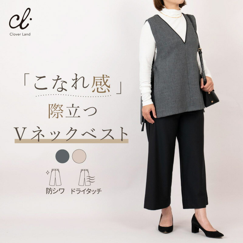FREEサイズ 着丈 前65・後71 身幅 49.5 肩幅 38 袖幅 20 裾幅 51.5 総丈 96.5 原産国 日本 仕様 ポケット無し 横紐 素材 ポリエステル100% 洗濯 手洗い推奨 注意点 平置き採寸です。多少の誤差がある場合があります。ご了承ください。 当て布使用タンブラー乾燥NG ※ディスプレイや照明などご覧の環境によって、掲載写真と実物の色が異なって見える場合がございます キーワード CloverLand クローバーランド くろーばーらんど ベスト 大人ベストセットアップ ツムギート サイド紐 レディース オフィス 通勤 日本製 広島県産 大人女性 洗える キレイめ こだわり丸繊 まるせん カジュアル セミフォーマル 軽いツムギートサイドスリットベスト おしゃれを楽しみたいあなたにおすすめアイテム。 上品でこなれスタイルが実現できます。ベストをプラスワンするだけでお洒落度UP!! 深Vネックのおかげで顔まわりがスッキリな印象に。パイピングを施すことでシャープな雰囲気を演出します。 セットアップで着用すれば、きちんと感のある上品なコーディネートが完成します。 入園式・入学式・卒園式・卒業式などのセレモニーシーンはもちろん、 学校行事やお呼ばれにも活躍するフォーマルな一着。 きれいめで落ち着いた印象を与えるデザインは、オフィスや通勤にもおすすめです。 セットアップ用のボトムスは こちら ドライタッチ機能のおかげでさらっとした着心地です。重ね着してもごわつきにく いのでお洒落を楽しめます。 防シワ効果のおかげで手間なアイロンがけも不要です。お手入れ楽ちんなのは嬉し いポイントです。 深V ネックで顔まわりがスッキリとした印象に。パイピング仕様で上品さとシャー プさを演出。広めの袖ぐりのおかげで重ね着もバッチリ! 後ろ丈長めでヒップをすっきりカバー。スタイルアップも叶います。 紐止め仕様で着用中に紐が抜ける心配もありません。 【「こなれ感」際立つVネックベスト】上品&シャープな大人ベスト 深V ネックが顔まわりをすっきりと見せ、襟ぐりのパイピング仕様が上品さと シャープな印象を引き立てる、大人女性のためのV ネックベスト。 後ろ丈はやや長めでヒップラインをカバー。体型カバーしながら美しいシル エットを演出します。 広めの袖ぐりで重ね着しても窮屈になりにくく、インナー次第でロングシーズ ン着回せます。 サイドの紐ディテールが程よい動きを生み、シンプルな中にも洗練されたアクセントをプラス。 紐止め仕様で着用中に紐が抜ける心配もありません。 春先や秋口にかけて、軽やかで快適な着心地を実現。 きれいめスタイルはもちろん、大人カジュアルコーデにもマッチします。 通勤やオフィスカジュアル、おしゃれなお出かけ、入園・入学などのセミ フォーマルにも活躍。 さらに、同素材のパンツと合わせればセットアップとしてより一層スタイリッ シュな印象に。 単品使いでもセットでも楽しめる、着回し力抜群の日本製ベストです。 40 代・50 代の大人女性にふさわしい品格と快適さを、この一枚で。 日本製ベスト/レディース/ V ネック/ベスト/ 深V ネック/スリット/ 体型カバー/ ヒップカバー/ 春/ 秋/30 代/40 代/50 代/60 代/大人/上品/ きれいめ/ オフィス カジュアル/ 通勤/セミフォーマル/入園/ 入学/ 卒園/ 卒業/セットアップ/袖なしベスト/重ね着 / レイヤー/大人カジュアル/ 春秋 / 軽やか/ 動きやすい/サイド紐/紐付き/サイドスリット/シンプル/無地/ 高品質/日本縫/ミセス/アラフォー/アラフィフ/ フォーマル/ 仕事着/ ビジネス/ オフィス/上質素材/高見え/ 高級感 /スマート見え/細見え/ 美シルエット/すっきり見え/エレガント/おしゃれ/季節 の変わり目/パイピング/ 着回し/コーデ/ブラック/ベージュ/動きやすい/日本製/洗練 9