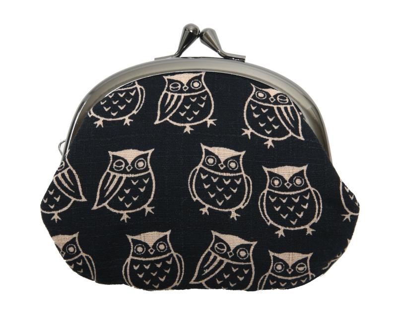 [ハセガワ] フクロウ がま口 京都職人手作り 財布 小銭入れ ふくろう 梟 日本製フクロウ柄のがま口財布です。サイズ:約 高さ9cm 幅12cm素材:綿京都職人による手作りです。生地の裁断部分によって柄の出方が変わります。