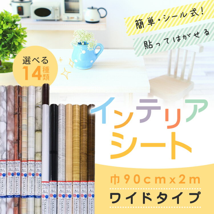 《巾90cmx長さ2m》インテリアシート リメイクシート 壁紙シート【貼ってはがせるインテリアシート(ワイドタイプ)】木目 大理石 タイル レンガ シール おしゃれ カラー キッチン 家具 収納 白 黒 カセン和紙工業