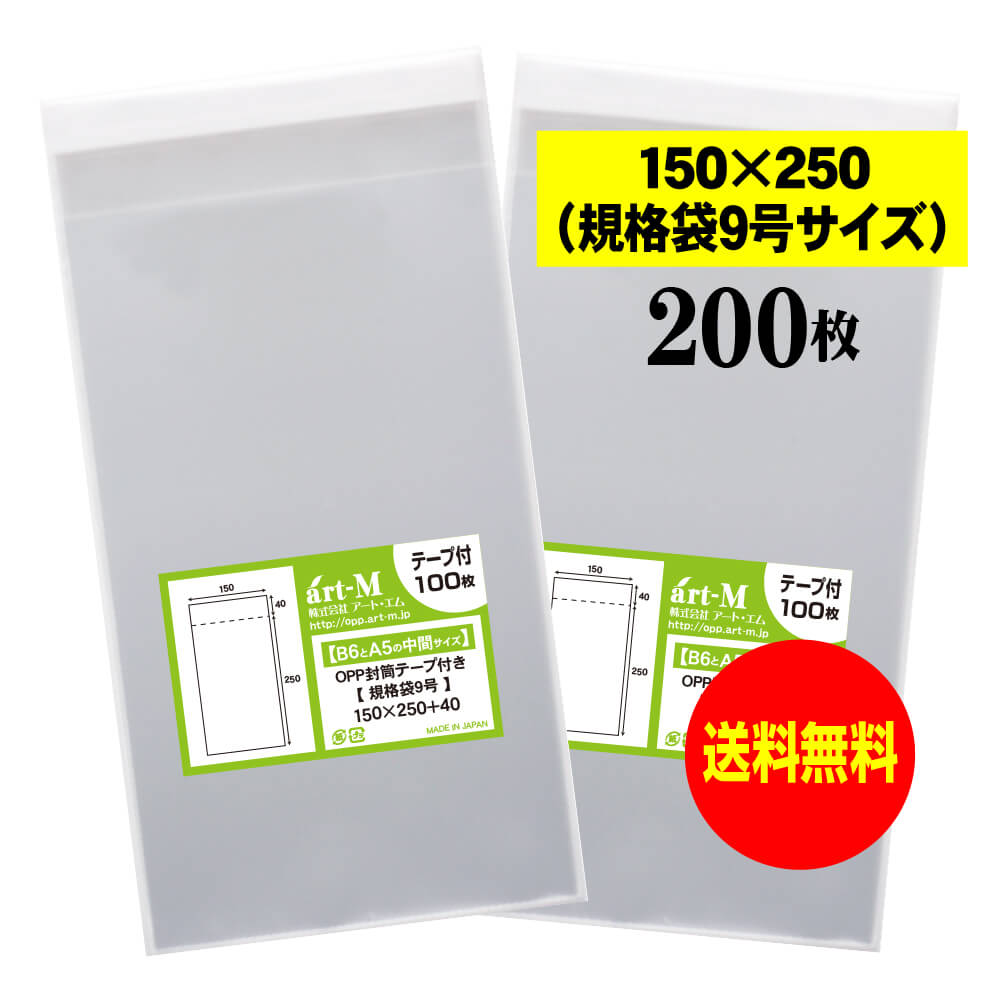【送料無料 国産】テープ付 15cmx25cm【規格袋9号】透明OPP袋(透明封筒)【200枚】30ミクロン厚(標準)150x250+40mm