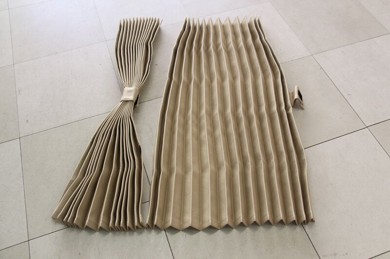 トラックカーテン リアカーテン プリーツ ベージュ 1級遮光 巾85cmx丈70cm 2枚入り フック16ケ入り ベット後ろ用カーテン 安心の日本製 トラック用品 トラック用カーテン