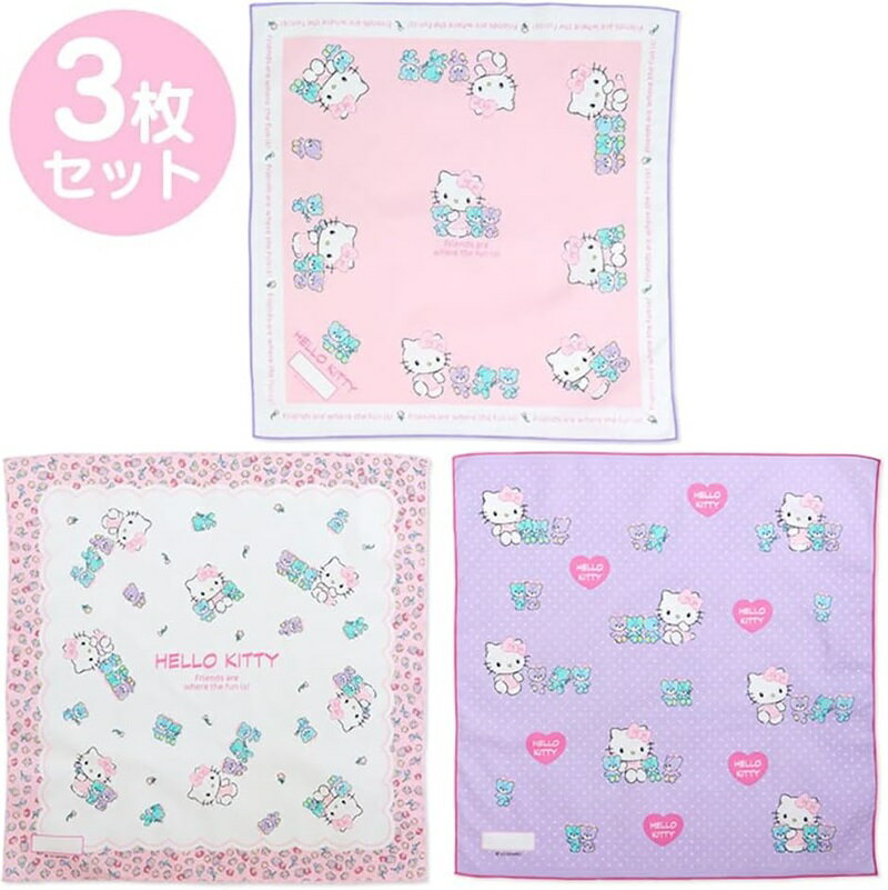 サンリオ 3枚組ランチクロス(約43cmX43cm)ハローキティWH