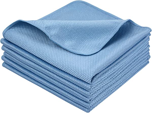 吸水速乾マイクロファイバーガラス拭きクロス グラスクロス キッチン食器拭きクリーニングタオル 洗車タオル 掃除クロス6枚 (ブルー, 40cmx40cm) 送料無料