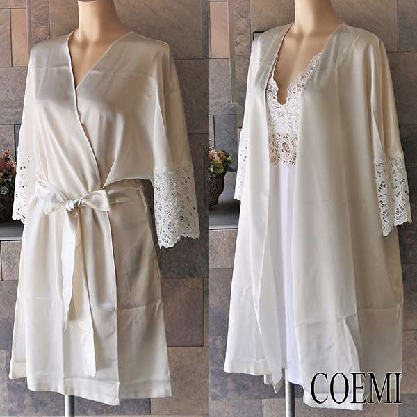 【送料無料】【COEMI(コエミ)】ポーランド、輸入、ポリエステル、サテン、光沢、高級レース、風防止、寒さ対策、プレゼント、誕生日、ルームウェア、リラックス、アイボリー、ガウン、ローブ