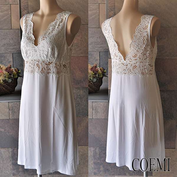 【送料無料】【COEMI(コエミ)】ポーランド、マイクロモダール、天然素材、環境に優しい、低刺激、高級レース、体に優しい、吸湿性、シルクの肌触り、アイボリー、プレゼント、誕生日、ナイトウェアドレス