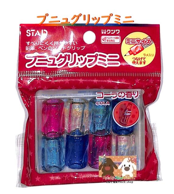【 クツワ/ Kutsuwa 】プニュ グリップミニ RB013C コーラの香り キラキラ ラメ入り ミニタイプ 8個入り soft ソフトタイプ ぷにゅ ぐりっぷ MINI Coke かおり 香り付き えんぴつ用 握りやすい 【3cmメール便OK】