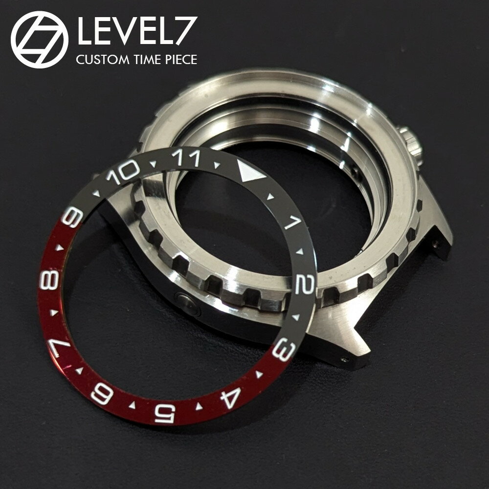 【SEIKO MOD カスタムパーツ】セラミック製 ベゼルインサート フラット型 GMT 24H表記 ブラック×レッド COKE/コーラ カスタム用パーツ LEVEL7