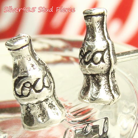 シルバーピアス Cocaの文字が入った瓶がカワイイ コーラCokeの空きビンのスタッドピアス シルバー925 silver925 シルバーアクセサリー スタッドピアス レディースピアス