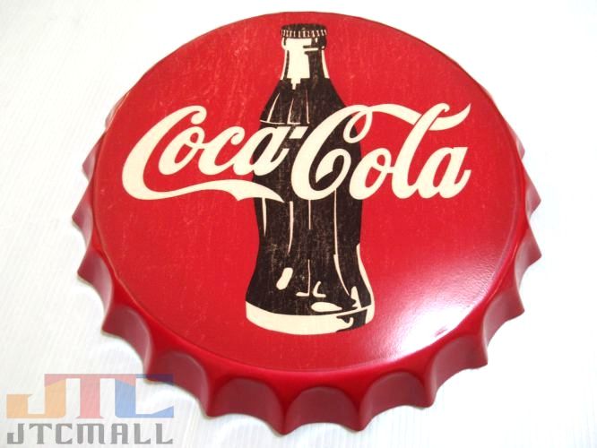 【大迫力35cmボトルキャップ】COCA COLA COKE コカ・コーラ 女 ドリンク ブリキ看板 ボトルキャップ型宣伝 広告 店舗用 アメリカン雑貨 看板