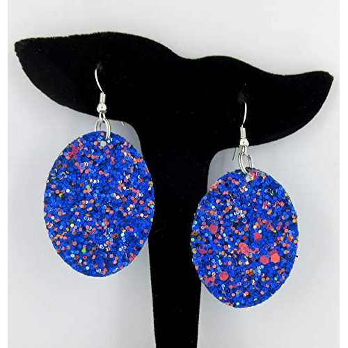 ブルーとピンクとブラックのグリッターフェイクレザーオーバルダングルイヤリング Summerfield Collection Blue with Pink and Black Glitter Faux Leather Oval Dangle Earrings