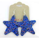 ブルーとピンクとブラックのグリッターフェイクレザーラージスターダングルイヤリング Summerfield Collection Blue with Pink and Black Glitter Faux Leather Large Star Dangle Earrings