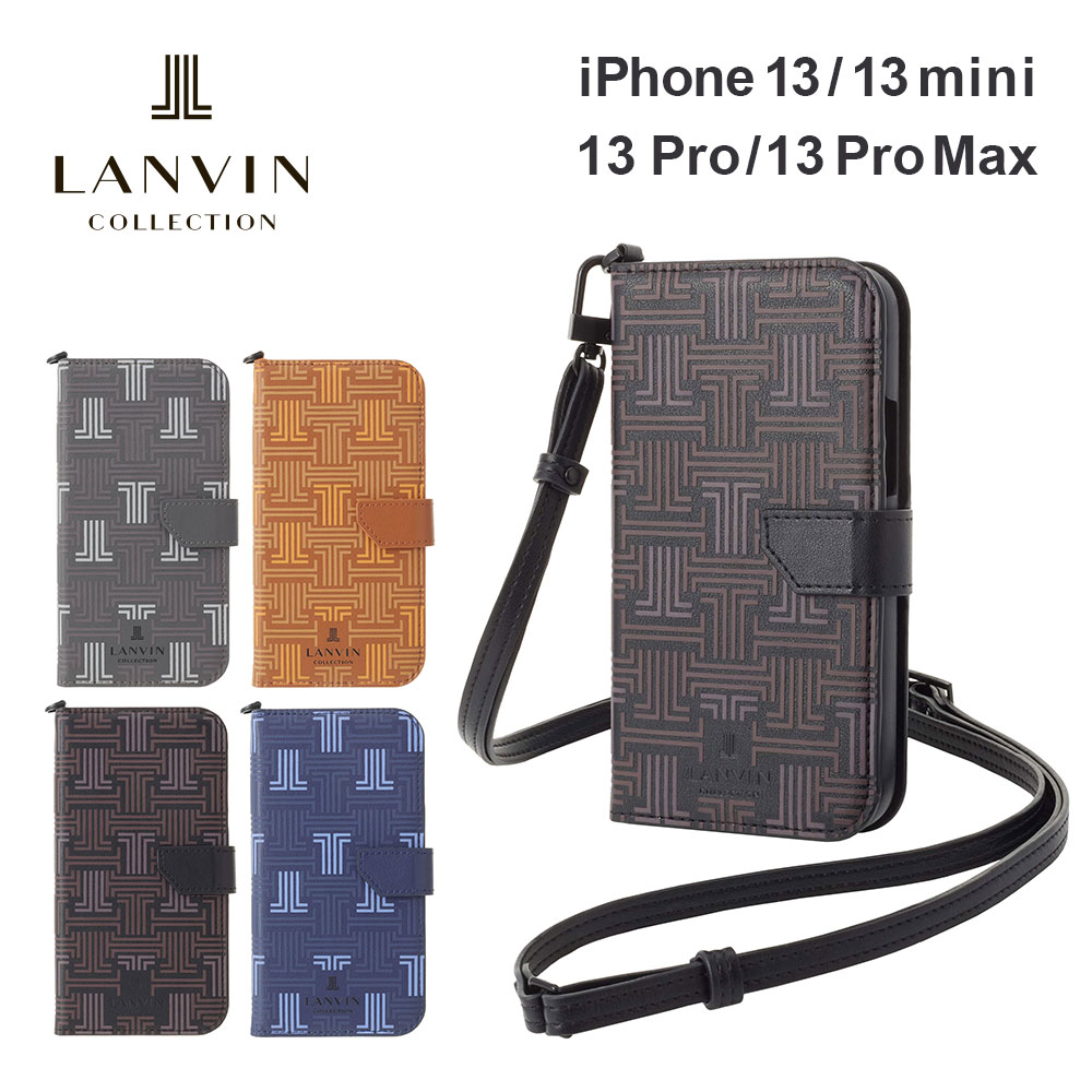 【正規代理店】 ランバン コレクション iPhone13 13mini 13pro 13promax ケース LANVIN COLLECTION Folio Case Signature with Neck Strap メンズ 男性 スマホケース ブランド 手帳型 ネックストラップ