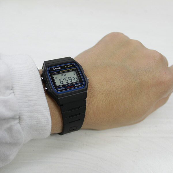 そもそもスタンダードカシオはCASIO社が海外に向けて売り出した国際的な販路を狙ったモデルで 80年代に廉価で薄型、低コスト大量生産のデジタルウォッチとして大成功した。 その後G-shockのブームで影を潜めつつも海外では依然人気のシリーズでした。そして逆輸入で持ち込まれチープカシオの異名を持ちつつ現在に至ります。 通称F91と呼ばれ、THE チープカシオとでも呼びましょうか? 1989年より製造・販売されている代表的なCASIOのデジタルウォッチです。安価なのに精巧な作り、それ故の、色々な噂もあるモデルという事でも有名です。 本体は21グラムと非常に軽量、ベルトも薄手なウレタン製で柔軟かつそれなりに丈夫です。時刻モードからアラーム・ストップウォッチと最低限の機能のみ搭載したモジュールはno.593 またこのモジュールならではのギミックもあります。それはこの右下のボタンを長押しすると、液晶画面数字の箇所に”CASIO”の文字が浮かびます。 当時海外で人気が特に高く、偽物まで現れた為、CASIOが偽物との差別化をはかる為、仕組んだからくりとも言われています。 CASIOの歴史を知る上でも外せない一本でしょう。 機能 ●ケース・ベゼル材質:樹脂 ●バンド:樹脂バンド ●日常生活用防水 ●使用電源・電池寿命 ●電池寿命:約7年 ●樹脂ガラス ●ストップウオッチ(1/100秒、60分計、スプリット付き) ●時刻アラーム・時報 ●LEDライト:グリーン ●オートカレンダー ●精度:平均月差:±30秒 ●12/24時間制表示切替 付属 取り扱い説明書(保証書付)配送方法宅配便のみCASIO化粧箱が付きます(配送方法追跡可能メール便の場合は付属しません) ケース樹脂 サイズ(H×W×D)38.2×35.2×8.5 mm 重さ21g バンド125〜205mm ◆ご購入時に内蔵されているのは、試用電池のため電池切れが早い場合がございます。 予めご了承下さい。 <保証につきまして> こちらの製品は、CASIO製品販売店におきまして、故障時の修理が受けられます。 保証につきましては、お買い上げ日より1年間有効。 保証規定以外の修理につきましては、有償での修理となります。 故障や修理のお問い合わせは、CASIO販売店もしくはCASIOテクノに直接ご連絡下さい。 (お問い合わせ先につきましては、保証書に記載してございますのでご確認下さい。) ※画面の色は、ブラウザや設定により実物と若干異なる場合があります。予めご了承の上、お買い求め下さい。 ご存知、世界に通用する日本の電子機器メーカーCASIO(カシオ)。これまで、「他には真似できない独創性」を追い求めて作り続けられた製品が数多く販売されてきた。CASIOといえば、時計以外にもデジカメ、電卓、電子楽器など幅広く展開されているが、特に若者を中心に幅広い層に受けたG-SHOCKやBaby-G、さらに高機能を備えたスタイリッシュなデータバンク、アクセサリー感覚で身に付けた金色のベーシックなデジタルウォッチは記憶に新しい。そんな人気ウォッチは、その時代を反映するように爆発的ヒットとなり、今もなお根強いファンに支えられている。 CASIOでは、ここ数年、ファッション感覚で楽しむツールとしての「時計」を提案。セレクトSHOPや人気ブランドとの企画を打ち立て、時計をファッションの一部としてきた。今期は、人気ショップ等とのT-shirtsシリーズやフリーペーパー、各地でのイベントなどを積極的に活動中。 毎朝、何気なく手に取る時計。気が付けば、いつも同じ物を身に付けていませんか?一生物の高価な腕時計では味わえない、毎日のコーディネイトに合わせた時計選びにぴったりですよ♪ 《CASIOの取扱商品全てを見る》