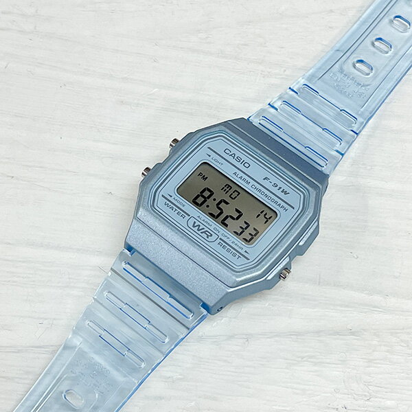 CASIO CollectionF-91WS-2JH スケルトンサックスブルー スタンダードデジタル[ カシコレ ベビーブルー 水色 チプカシ プチプラ ]【配送方法:追跡可能メール便を選択の場合、BOXは無しです】