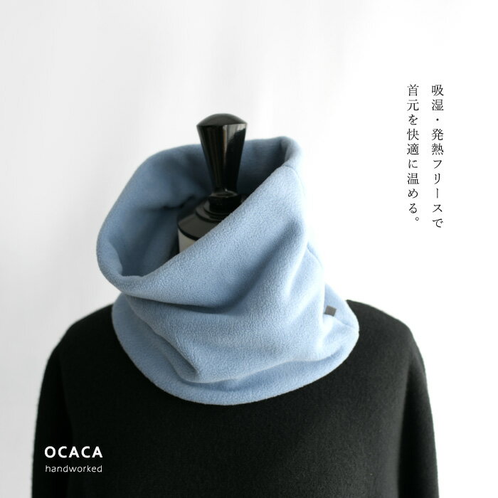 OCACA オカカ <えらべるタグ色>吸湿発熱フリース ネック ウォーマー ゲイター スヌード 日本製 ハンドメイド 32OCC-COLLO2 ※メール便は1点で1個口です。複数点ご注文の場合は点数分の個口となります。 吸湿・発熱機能フリースの定番ネックウォーマー 2020年のコロナ禍の冬に販売開始して以来、たくさんのリピーターさまに支持されてきたOCACAのフリースネックウォーマーです。ピタっとしすぎず、ルーズすぎないサイズ感とありそうでないシンプルさで、屋内外問わず、普段使いからスポーツシーンにはもちろん、スーツなどのビジネスシーンまで、幅広い用途でお使いいただけるので、男女問わず、年齢も問わずご愛用いただいています。毛玉ができにくい加工が施されたフリースは、肌触りがとても滑らかで、もっちりと本当に肌触りが優しく、吸湿機能つきで首元に湿気がこもりにくく、暖かさをふんわりキープしてくれるので一日中着けっぱなしでも快適です。左横にちょこんと付けたタグは、お洗濯の時フリースに洗濯バサミの跡が付かないためと、家族で使う時の目印としても役立ちます。全20色の中からお好きなタグ色をお選びください。 ■商品誕生ストーリー■ 家の中で過ごすことが多くなったコロナ禍の冬、ゲイターやネックウォーマーが便利だけれど、ほとんどの場合、スポーツシーンでの着用を考えて作られているので、襟の内側に入れて着けるフィット感のあるものが多いことや、スポーツブランドのタグが外側にパッチのように縫い付けてあることがスポーティー過ぎてファッション性が低いことが不満でした。かと言ってスヌードのように二重巻きにするものは家の中では大袈裟だし、ストールやマフラーも裾が邪魔だし、ウールやカシミヤでは頻繁に洗えないし。シンプルなデザイン、ほどよいボリューム、手軽に洗える素材できちんとあったかい首巻きがあったらいいのにな、と思って作ったフリースネックウォーマーです。 着こなしのポイントにも 性別や年齢も問わず、流行も問わないベーシックな色から、着こなしに華を添える差し色まで豊富に揃えました。アウター色にあわせてご家族で、お子様からおじいちゃん、おばあちゃんにも安心して使っていただけるので、贈り物にもご利用ください。 すっきりと晴れ渡った空のような色 くすみの無いグレー味を帯びた水色。淡色デニムみたいな雰囲気で着こなしやすい色。 差し色にぴったりの赤 黒やネイビーなど、ダークトーンでまとめた冬のコーデがたちまち映える魔法の赤。 大人可愛い雰囲気のモカ 優しくて上品な印象に仕上がるモカ色。 男性にも人気のモスグリーン 緑が控えめでマイルドな印象のモスグリーンは男女問わずおすすめです。 ナチュラル感と上品さのアイボリー ホワイトよりやや黄味掛かったアイボリーホワイトは、優しさが感じられます。 肌馴染みのいいヌードベージュ 日本人の肌色に近いくすみのないベージュ。ファンデーション汚れも目立ちにくく、色の主張が控えめなのでさまざまなアウター色にマッチします。 男女問わず人気の杢グレー 杢調のライトグレー。汚れが目立ちにくく、ハードになり過ぎないので性別も年齢も問わず人気の色です。 肌を明るくキレイに見せてくれるベビーピンク やや青味掛かったベビーピンクは、くすみがちな秋冬の顔色を透明感のある肌色に見せてくれます。決して甘くなりすぎないので年齢問わず着けられます。 マイルドな色合いのネイビー 暗すぎなくて、やや浅い色合いのネイビーは、強すぎない印象なので男女問わず使える色です。 引き締め効果大のベーシックな黒 キメの細やかなフリースだから黒色もしっとりと大人っぽい雰囲気です。 肌触りしっとりの機能性フリース 種類が豊富なフリースという素材の中から、このネックウォーマーのコンセプトに相応しいと選んだのは、吸湿・発熱機能を備えた滑らかな手触りのポリエステル100%のフリース。毛足はやや短めなので毛束が出来にくいため耐久性も期待できます。素材に触れているとジワっと温かく、しっとりとした肌触りは、一日中着けていたくなります。なにより、汗をかきやすい首元なので吸湿機能はとても嬉しいポイント。首元にたまる湿気を逃してくれるので、その後の冷えからも解消されて快適さをキープできます。 発想のきっかけはマイクロD・ゲイター 実はパタゴニアのマイクロD・ゲイターを長年愛用してきました。もう何年も使ってくたびれてきて、買い直そうと思ったものの、もう少しスポーティー感が控えめな方が使いやすいなと思って、素材とサイズを考えて作ったネックウォーマーです。マイクロDの素材より、肉厚さがあるので首元が貧弱になりにくく、ほど良い存在感がきちんとオシャレな感じを作ってくれます。屋内でも屋外でも、アウターに合わせたり、さまざまなシーンでお使いいただけます。 欲しかったものを形に セレクトショップのバイヤーとして、年間400を超える国内