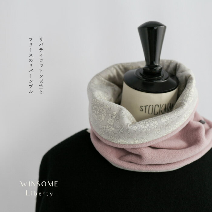 WINSOME Liberty ウィンサムリバティ 【フリースPINK】× リバティ タナジャージ リバーシブル ネックウォーマー 【選べるリバティ色柄セミオーダー】 32WSL-COLLO-PINK ※メール便は2点まで。3点以上はメール便2個口となります。 フリースとリバティのリバーシブルネックウォーマー リバティのコットン100%のシェラトンジャージ(タナジャージ)と吸湿・発熱機能付きのフリースを使ったリバーシブル使いできるネックウォーマーを作りました。 リバティとフリースのどちらを表側にしても着けられるのはもちろん、上部だけを軽く折り返してみたり、フリースとリバティ天竺の分量を変えてみたり、アレンジも楽しめます。リバティのタナジャージは、赤ちゃんの肌着にできるほど柔らかな肌触りのコットン100%のTシャツ素材。横方向に抜群に伸縮するので、頭から被るネックウォーマーの装着時にストレスがなく、また意外と汗ばむ首元は、肌に触れる側がコットン素材なら安心です。フリースの素材は吸湿発熱機能付きの毛玉ができにくいポリエステル100%で、とても滑らかな肌触りです。 この商品はリバティタナジャージの色柄をお選びいただき、あなただけの組み合わせでお仕立てする【セミオーダー】商品です。 大人のための甘すぎないピンク 少しベージュが入った青味が控えめのピンク。甘くなりすぎない大人のためのピンク。 リバティの色柄をお選びください リバティのタナジャージは、赤ちゃんの肌着にできるほど柔らかな肌触りのコットン100%のTシャツ素材。横方向に抜群に伸縮するので、頭から被るネックウォーマーの装着時にストレスがなく、また意外と汗ばむ首元は、肌に触れる側がコットン素材なら安心です。薄手なので洗濯後も乾きが速く、フリースの速乾性と大差なくすぐに乾いてくれるので冬には嬉しい限りです。 ■CAPELカペル|グレー ■SMALL SUS スモールサス スモールスザンナ|ベージュ ■FETHER FIELDS フェザーフィールズ|スカイブルー ■EDNA エドナ|ブルー ■EDNA エドナ|ピンク ■EDNA エドナ|セージグリーン ■FETHER FIELDS フェザーフィールズ|スミクロ ■YOSHIE|ブラック ※黒地に色むらがあるのは製品特性です。 いくつになっても愛嬌のある可愛さを大切にしたい WINSOMEとは「愛らしい・愛嬌のある」という意味。WINSOME Libertyウィンサムリバティはリバティやウィリアムモリスなど伝統の生地を用いて、神戸のアトリエにてハンドメイドで仕立てています。いくつになってもWINSOMEを大切にしたいすべての女性へ、長く時をともにできる心地よいアイテムを提案します。