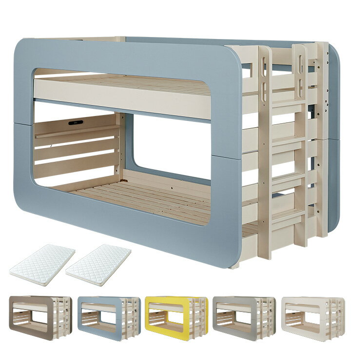 【マットレス付き】超耐震構造 宮付き 二段ベッド 2段ベッド Colony(コロニー) 5色対応 マットレスセット マット付き マットセット ロータイプ 分割 分離 子供 大人用 コンパクト 耐震仕様 木製 LED照明 おしゃれ