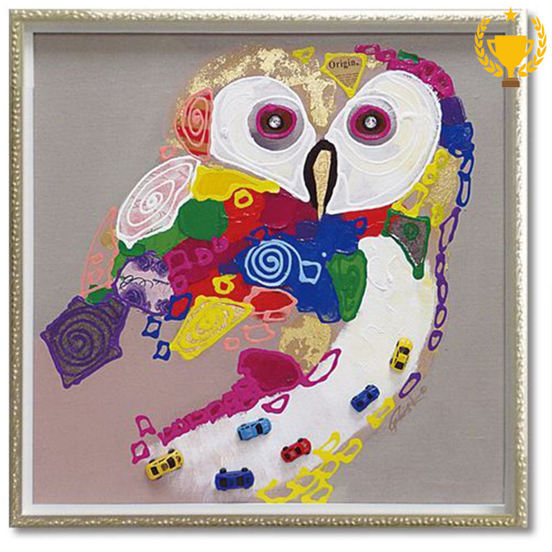 【楽天ランキング1位獲得】絵画 インテリア 額入り フクロウ COLORFUL OWL W63xH63cm カラフルオウル ビビットふくろう 風水