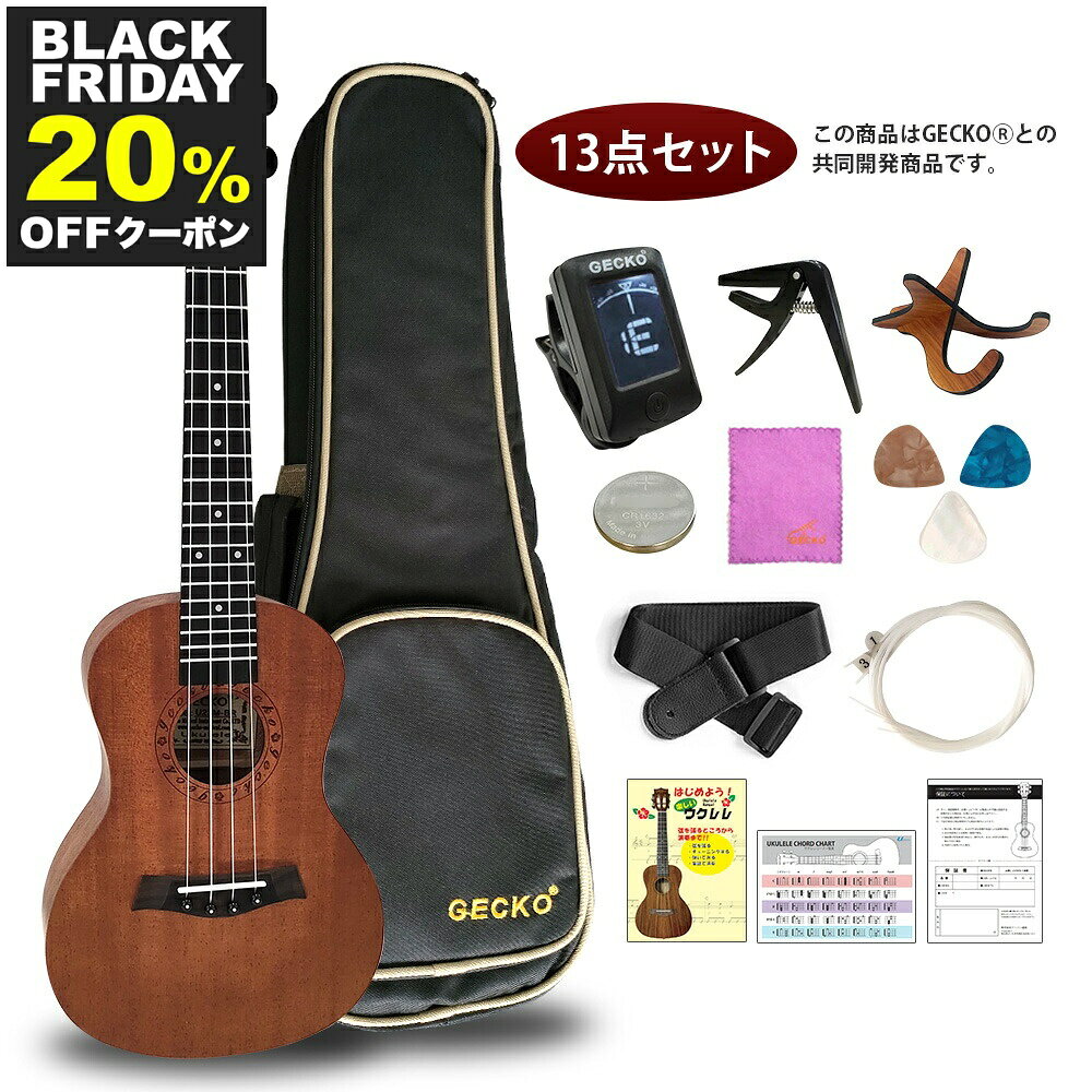 【BLACK FRIDAY P10倍 11/27迄】 ウクレレ 23インチ コンサート ナチュラルカラー 13点 セット 初心者 U23M (チューナー ピック ストラップ ウクレレ弦 ケース スタンド コード表)