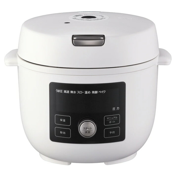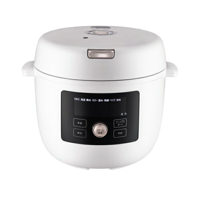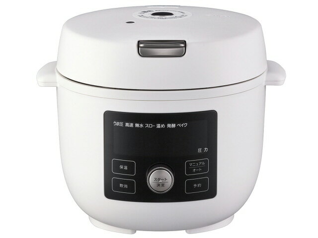 商品説明★ これ一台でごはんやおかず、発酵、スイーツもおまかせ!1台10役(うま圧、高速、スロー、低温、無水、発酵、ベイク、炊飯、茹で、温めコース)★ 選べる40種類のオートメニュー&火かげんや調理時間を手動で設定できるマニュアルモード※※うま圧・高速・スロー・無水・温め・発酵・ベイクメニュー★ 食材の食感を活かし、栄養素を逃しにくい。おいしさにこだわった「うま圧」調理。★ 「待ち時間」=減圧時間を大幅に短縮。調理を開始してからふたを開けられるまで、27分※!※オートメニュー「うま圧カレー」の場合★ お手入れらくらくオートメニューに「クリーニング」搭載!さらにお手入れパーツたったの3点!内ぶたとつゆ受けは食器洗い乾燥機対応★ 「ダイヤル&タッチボタン」で直感操作!スペック* 本体サイズ(約)(幅×奥行き×高さ):28.1×27.4×22.6cm* ふた開き時の高さ(約):42.7cm* 本体質量(約):3.6kg* 満水容量(約):2.2L* 調理容量(約):1.4L ※うま圧・高速コースは1.2L* 炊飯容量(約):白米:0.18〜0.54L(1〜3合)、玄米:0.18〜0.36L(1〜2合)* 定格消費電力:650W* 使用最高圧力:15kPa* 設定温度(発酵):1〜3℃* 最大予約設定時間:30〜60時間* 最大保温時間:12時間* オートメニュー数:41* マニュアルメニュー数:7* 電源:100V50/60Hz* コードの長さ(約):1.1m* 付属品:レシピブック(40レシピ掲載)