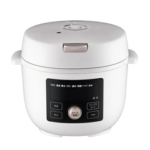 ※こちらの商品は初期不良交換対象外となります。 万が一不具合があった場合はメーカーサポートにご連絡お願い致します。 御了承の上ご購入下さい。 ■セールスポイント1台11役!毎日使いたくなる圧力調理鍋 4〜6人分材料を入れてボタンを押すだけ!3ステップで簡単クッキング■商品スペックタイプ 電気圧力鍋最高圧力 15 kPa消費電力 760 W対応電圧 100V機能 保温機能、スロー調理機能、タイマー予約機能満水容量 4L調理容量 2.5L炊飯容量(白米) 0.18-1.08L / 1-6合設定温度(発酵) 30-60℃最大予約設定時間 12時間最大保温時間 12時間自動メニュー数 43手動メニュー数 8コードの長さ 1.1mサイズ 幅×奥行×高さ 31.9×32.4×25.7cm重量 4.6kgカラー マットホワイト