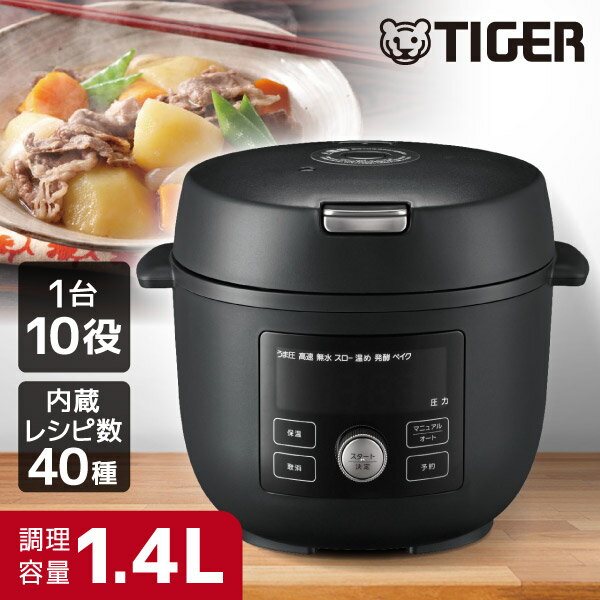 タイガー COOKPOT クックポット 1台11役 うま圧 電気圧力鍋 電気調理鍋 容量 1.4L 炊飯容量 3合 マットブラック COK-B220KM【送料無料】