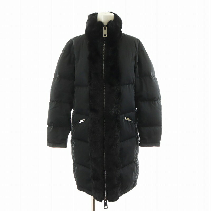【中古】レコパン LES COPAINS ダウンコート ロング丈 ファー アウター 40 黒 ブラック /AN52 レディース 【ベクトル 古着】 250523