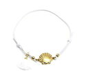 【送料無料】ジュエリー・アクセサリー ホワイトブレスレットチャームゴールデンスチールシェルポンポンbc3528f bracelet elastique blanc avec charm coquillage acier dore et pompon