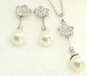 【送料無料】ジュエリー・アクセサリー ゴールドホワイトメッキシェルパールキュービクハンギングコリアーロットor blanc plaque coquillage perle cz cubique fleur pendantes oreilles collier lot