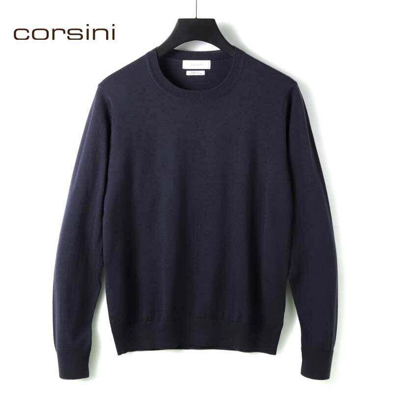 corsini / コルシーニ|Super140'sウルトラスーパーファインウール30Gクルーネックニット|(ネイビー)| 秋冬 セーター ハイゲージニット 丸首 メンズ 日本製 アウトレット