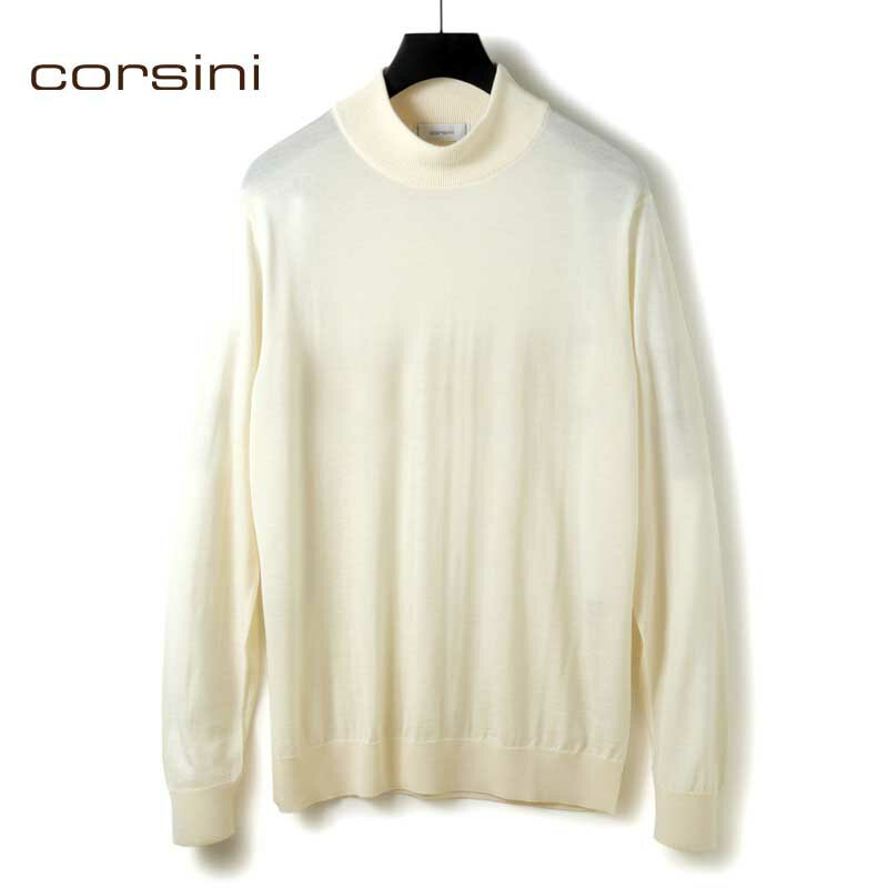 corsini / コルシーニ|Super140'sウルトラスーパーファインウール30Gモックネックニット|(オフホワイト)| 秋冬 セーター ハイゲージニット ハイネック メンズ 日本製 アウトレット