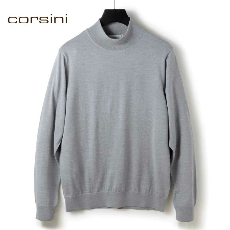 corsini / コルシーニ|Super140'sウルトラスーパーファインウール30Gモックネックニット|(ライトグレー)| 秋冬 セーター ハイゲージニット ハイネック メンズ 日本製 アウトレット