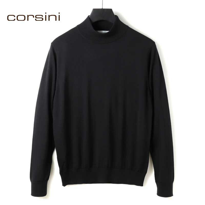 corsini / コルシーニ|Super140'sウルトラスーパーファインウール30Gモックネックニット|(ブラック)| 秋冬 セーター ハイゲージニット ハイネック メンズ 日本製 アウトレット