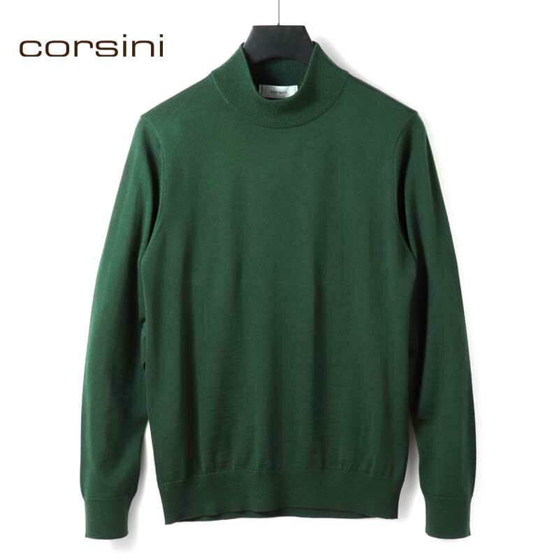 corsini / コルシーニ|Super140'sウルトラスーパーファインウール30Gモックネックニット|(ダークグリーン)| 秋冬 セーター ハイゲージニット ハイネック メンズ 日本製 アウトレット