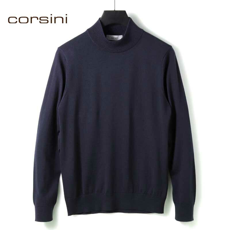 corsini / コルシーニ|Super140'sウルトラスーパーファインウール30Gモックネックニット|(ネイビー)| 秋冬 セーター ハイゲージニット ハイネック メンズ 日本製 アウトレット