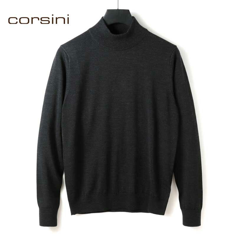 corsini / コルシーニ|Super140'sウルトラスーパーファインウール30Gモックネックニット|(チャコールグレー)| 秋冬 セーター ハイゲージニット ハイネック メンズ 日本製 アウトレット