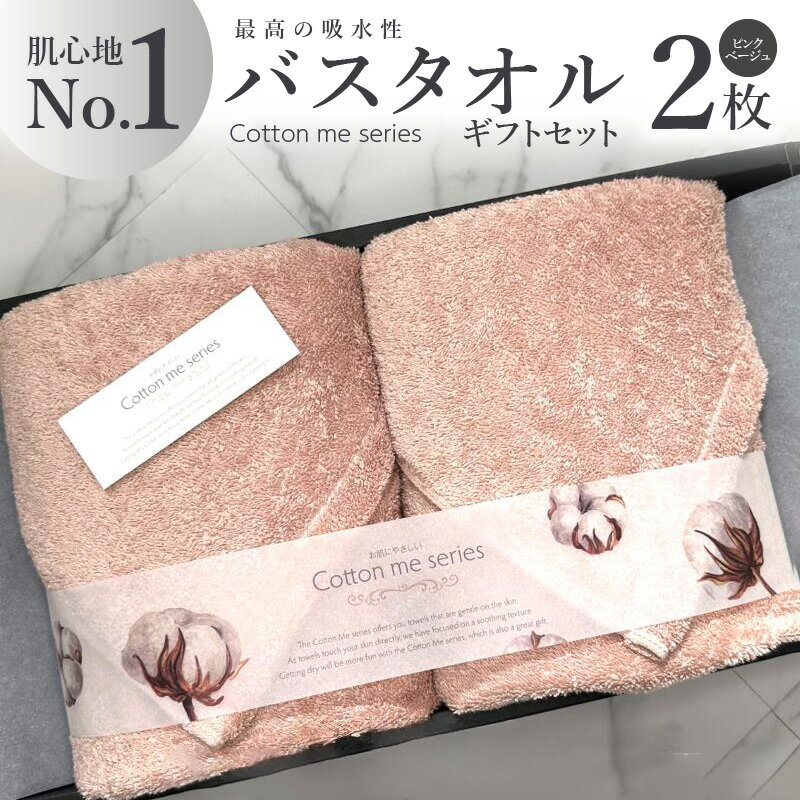 【ふるさと納税】タオル バスタオル 2枚 セット ピンクベージュ 綿100% 日本製 無地 単色 最高の吸水性 エアリーシュタオル ギフトセット ギフトボックス入り ギフト 贈答用 プレゼント cotton me 泉州タオル 大阪府 泉佐野市 送料無料