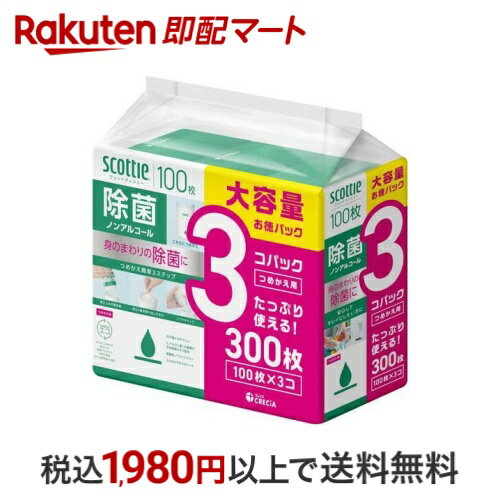 スコッティ ウェットティッシュ 除菌 ノンアルコール つめかえ用 100枚×3個 【スコッティ(SCOTTIE)】 ティッシュ