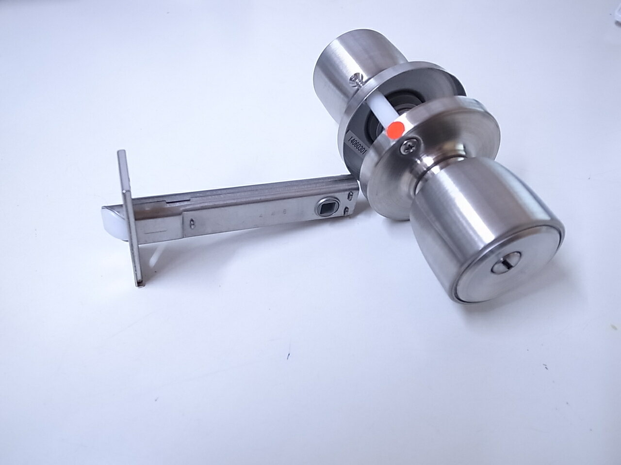HINAKA(ヒナカ)社のCOW(カウ)ロック261シリーズの表示錠(片面表示及び非常開錠、片面サムターン)タイプです。バックセット60ミリ、扉の端のステンレスのプレートサイズはタテ57ミリ、ヨコ23ミリです(フロント刻印261 COW)。両方の握り玉は7ミリ角の軸芯でつなげられてます。