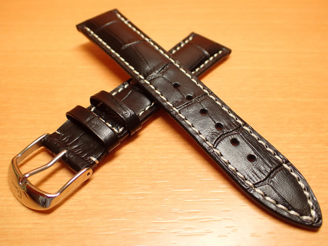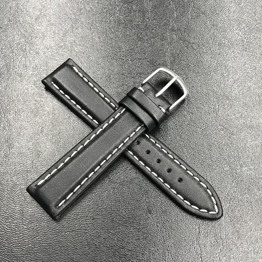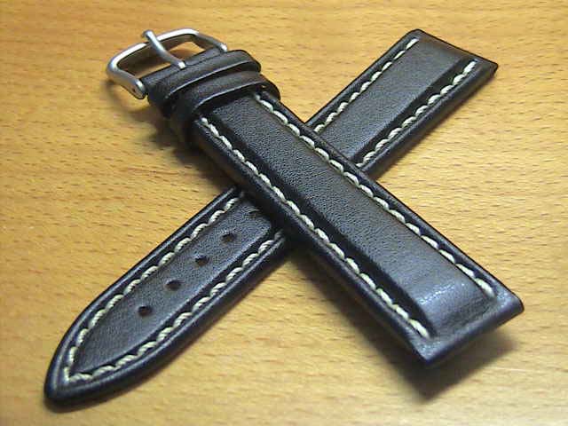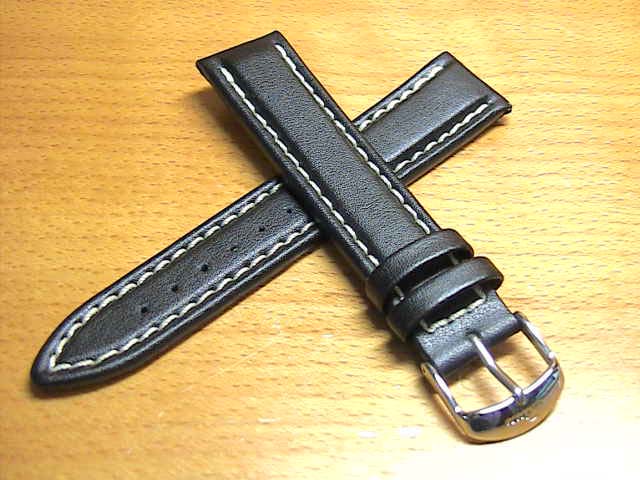 SINN ジン 腕時計 Sinn 純正バンド ベルト カウレザー・ストラップ (型押し)SSマット・バックル & SSポリッシュ・バックル (20mm & 22mm) 腕時計用 時計ベルト 時計用バンド ブラック(黒色)白ステッチ