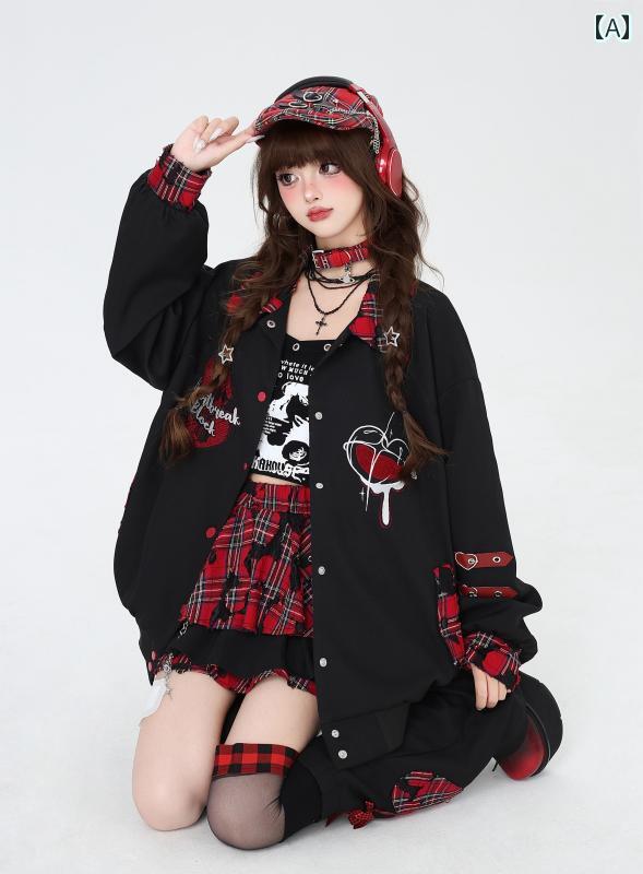 チェック柄 シャツ レディース crazygirlが 強く 推奨 します ! オリジナル ライト アジア 刺繍 チェック 柄 パッチワーク ベースボール ジャケット トップス 多 用途 秋 冬 レディース
